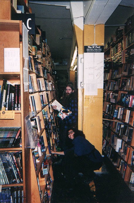 Beth and Eric made a return visit to Corvallis over Presidents' Day weekend. There was much good time spent. On Sunday we headed up to Portland and they were introduced to Powell's Books. Our visit was far and away the longest I've ever spent in there. While Eric and I wandered around, Beth methodically made her way through the long SF/Fantasy section. After a while she was sitting on the floor, checking out books. When she was done with one set of shelves she'd just push the handbasket down a few feet. It was amusing.