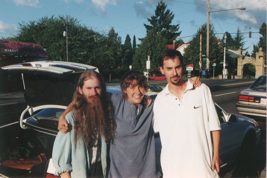 All the way through the west, Bill and I talked about this and that. We both left jobs and don't quite know what we're doing next, so we discussed that a bit. Web sites and the Internet was another; Bill runs his own at http://www.choisser.com/. The other big topic was identity. Bill's had some unusual experiences in the past few years, and he's been re-inventing who he is. We spent a good deal of time comparing notes about being gay longhairs. Bill's written an extensive Web site about face blindness, a rare neurological condition he has. It's very difficult for him to distinguish between different between people by looking at their faces. The thing that helps the most is if the person has long hair and facial hair. So the weekend at Jim's, which was to be mostly longhairs, was a unique chance for Bill to meet people that he could identify with.